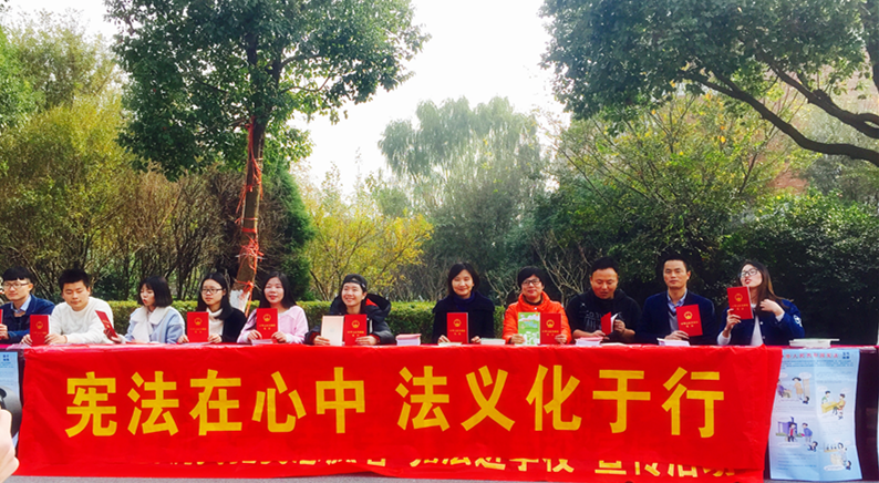法学师生党员们利用课余时间,发挥专业能力专长,向同学们宣传宪法知识,接受免费法律咨询活动。他们通过横幅倡导“宪法在心中,法义化于行”,以学习推广宪法法章等内容,具体展开“宪法日”普法宣传。活动中,党员师生耐心地向同学介绍宪法的相关知识,以及对于各行各业的重要影响,同时也结合同学们日常关心的网络购物维权、消费者公平性保障、知识产权、个人维权等其他相关法律知识进行答疑解惑,提升同学的宪法观念及基本的法律意识,取得了良好的宣传教育效果。