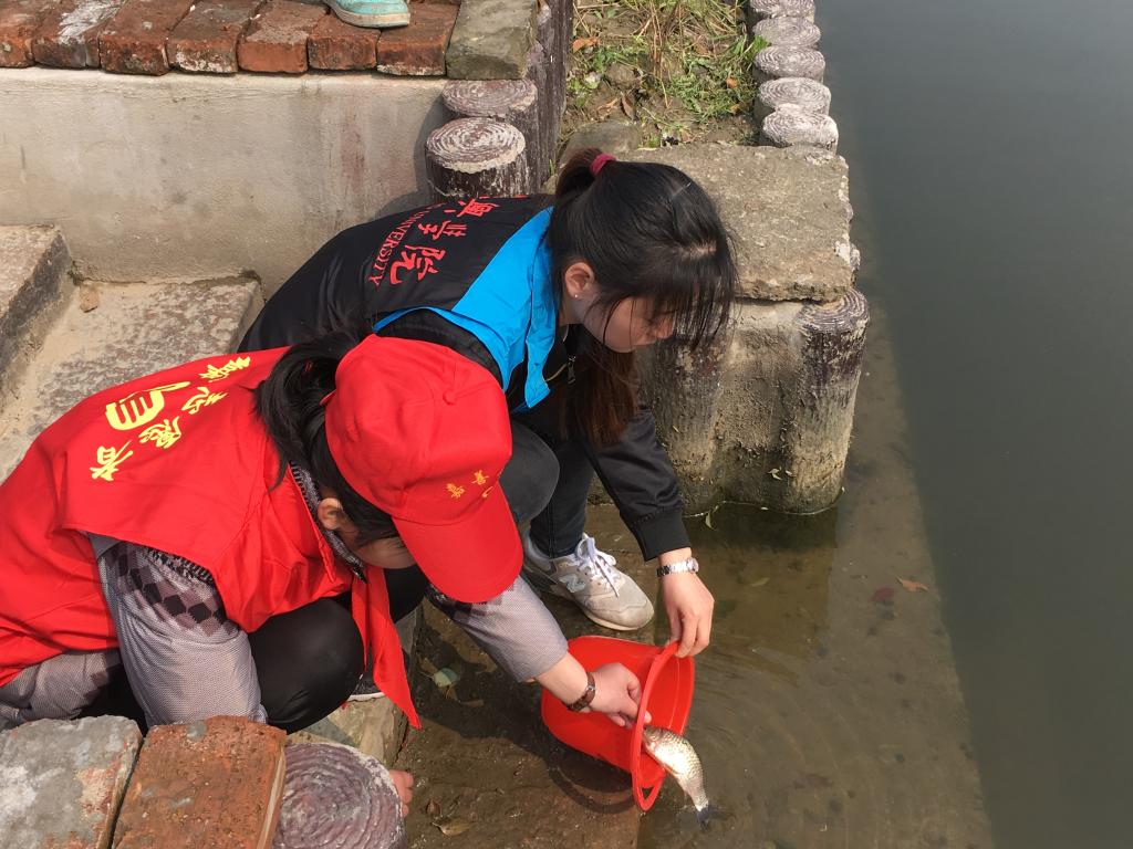 跟小学生一起放生鱼苗,将小生命还给大自然
