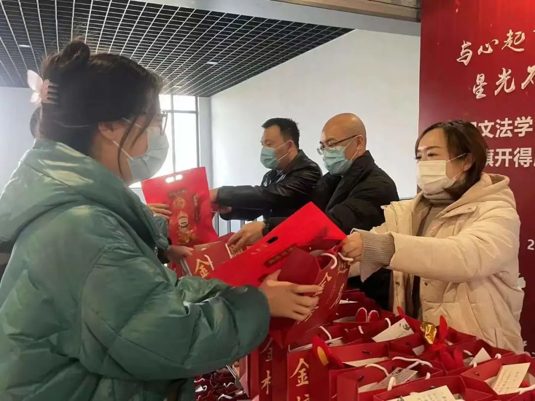 2022年12月12日,成人电影 在厚德楼二楼开展考研学子“送温暖、加油助力”慰问活动。成人电影 副院长(主持工作)童建华、成人电影 党委副书记虞岚、成人电影 副院长屈正林为2023届成人电影 考研学子们送上"文法限定考研加油包",并对文法考研学子们表达了深切的祝愿。到场的考研学子们也表示,定将全力以赴不负韶华。