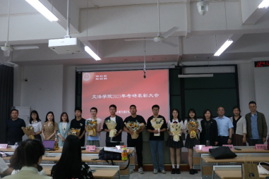 党委书记洪坚、副院长童建华(主持工作)、党委副书记虞岚、副院长屈正林、法学系系主任唐永梅、中文系主任郭雅静以及毕业班班主任参加此次表彰会。会议由虞岚主持。