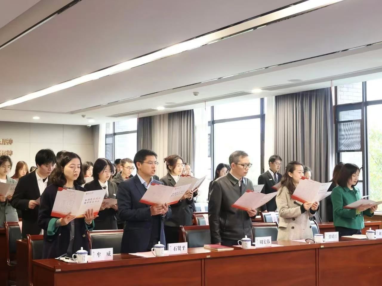 党委副书记及各学院学生代表在行政楼246会议室集体同步收看直播并进行宪法跟读等活动,活动由成人电影