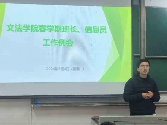 3月4日中午,成人电影 春学期班长、信息员工作例会在博学楼405教室顺利召开。本次例会由学工办辅导员计丹峰主持,辅导员闫诗佳、吴广以及成人电影 全体班长、信息员参加会议。