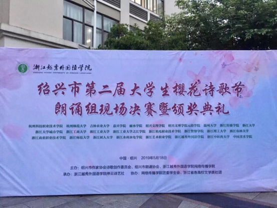 5月18日下午,绍兴市第二届大学生樱花诗歌节朗诵现场组决赛暨颁奖典礼在绍兴浙江越秀外国语学院镜湖校区举行。成人电影