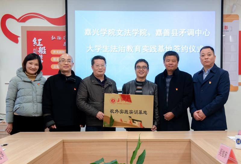 与嘉善县社会矛盾纠纷调处化解中心签署合作共建法学实践教学基地协议。嘉善县社会治理综合指挥服务中心主任周军、副主任沈海中、副主任吴旭东,成人电影