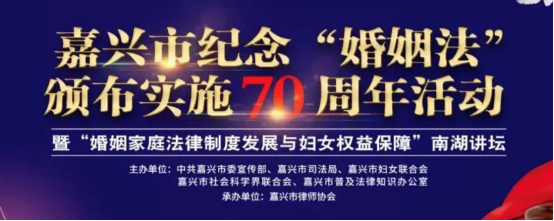 4月24日上午,中共嘉兴市委宣传部、嘉兴市司法局、嘉兴市妇女联合会、嘉兴市社会科学界联合会、嘉兴市普及法律常识办公室主办,嘉兴市律师协会承办的“嘉兴市纪念《婚姻法》颁布实施70周年活动暨‘婚姻家庭法律制度发展与妇女权益保障’南湖讲坛”在嘉兴市图书馆报告厅举行,活动通过禾点点、FM104.1新闻频率同步直播。