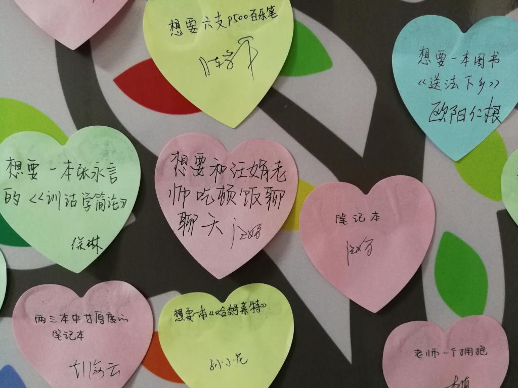 活动分征集、认领、圆梦三个环节。首先发放“微心愿”卡,在困难学生当中征集微心愿,“想要一套《唐宋诗词鉴赏》”,“想和汪娟老师吃顿饭聊聊天”,“希望有老师能够对考研择校、备考规划进行指导”、“想收到一束满天星”……一个个小小的心愿,就是孩子们一个个小小的梦想。为尽快促成学生微心愿的达成,党员教师根据征集情况和党员数量,按照一对一、多对一等方式认领。而后,全院党员教师积极为孩子们圆梦,用自己的行动点亮学生的微心愿,将孩子们的心愿一一实现。当孩子们的心愿实现后,脸上洋溢着幸福的笑容,心中流动着绵绵的师生情谊。