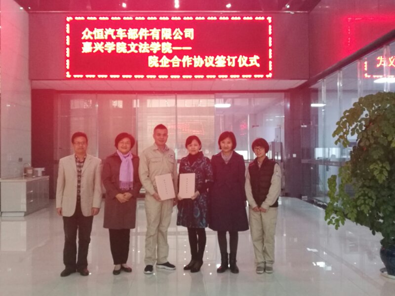 分别与浙江汇信实业有限公司董事长蒋加伟、众恒汽车部件有限公司的董事长蔡国伟签订了院企合作协议,嘉兴市侨留联副主席娄新生、联谊处处长李勇军、成人电影