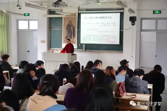据悉,该讲座一推出,学院的线上名额就已抢完,现场座无虚席,部分学生和嘉兴孔子学堂的一些志愿者、书法爱好者只能加座听课。