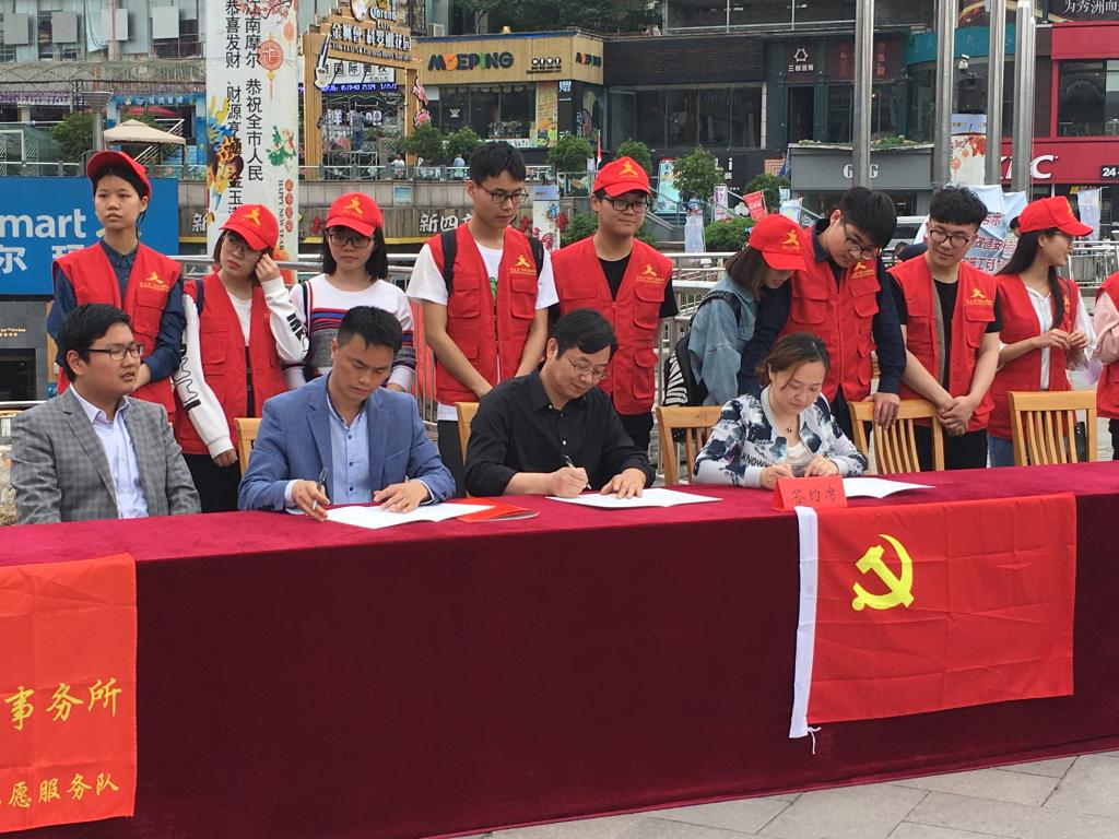 法学学科党支部、专业党支部、子城律师事务所党支部共建“律政先锋”签约仪式暨党员日活动在嘉兴江南摩尔广场顺利举行。嘉兴市司法局、浙江子城律师事务所、嘉兴学院成人电影