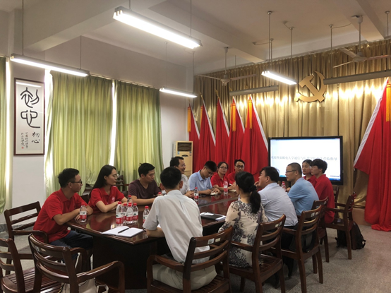 本次座谈会,潘泽谷院长介绍了学校的情况,洪坚书记就课程思政和思政课程创新提出了各自的举措,陈致远副院长就创新创业与红船精神的结合介绍了成人电影