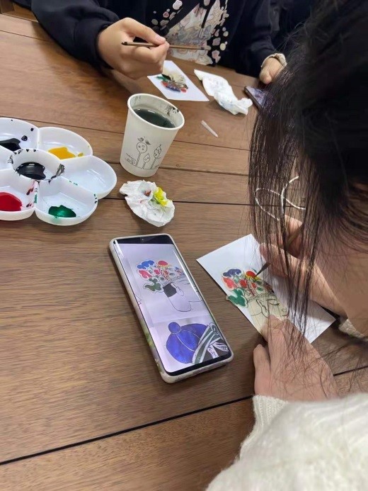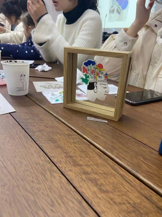 皮影演出结束后,在中华传统文化体验中心开展了海宁皮影戏的讲解与体验活动,40余位师生在现场体验制作皮影的乐趣,共同见证一件件皮影作品的诞生过程。
