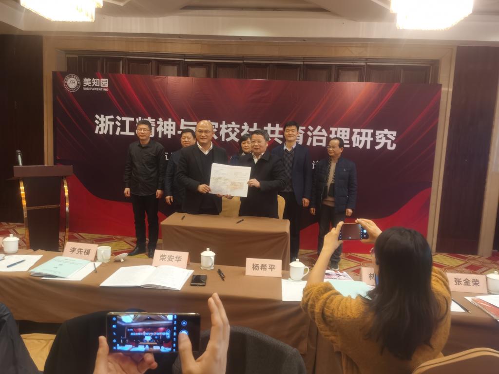 浙江省白水教育科学研究院成立于2004年,是在浙江省社科联的业务指导下,以家庭教育应用研究和推广为专业方向的省级“对策研究”类学术机构。此次签约旨在推进双方在家庭教育理论和应用研究方面的合作,成立“美知园人本家庭教育研究院嘉缘研究中心”,将该研究中心建设成为家庭教育研究的新型智库。