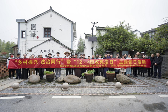 2022年12月10日,嘉兴学院法学学科党支部成员、嘉兴学院初心后浪宣讲团成员、子城律师事务所党支部成员、南湖区司法局相关科室人员在南湖区凤桥镇联丰村法治农家乐联合开展“乡村振兴-法治同行”暨“国家宪法日”主题宣传活动。