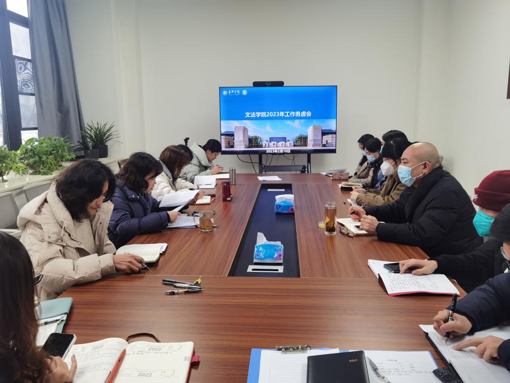 召开2023年工作务虚会,学院党政班子成员、各科室科长、系部主任、支部书记和系部副主任参加了会议,会议由学院党委书记洪坚主持。