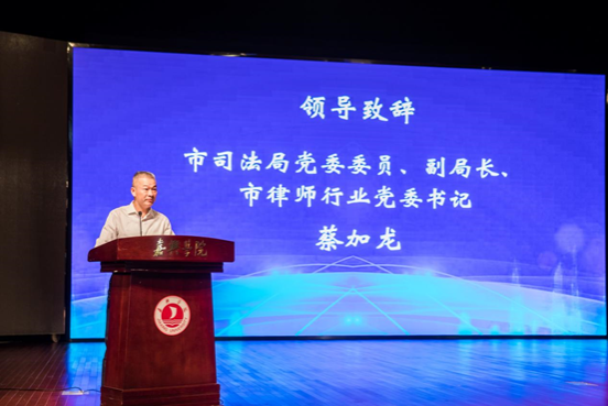 蔡加龙在开幕式上致辞,对本次论坛的举行表示热烈的祝贺,并向到会参加论坛的嘉宾和律师代表表示由衷地感谢。同时,对广大律师提出了三点要求:一是践行“五点希望”,争做党和人民满意好律师。二是胸怀“国之大者”,助力经济社会高质量发展。三是拓展“新兴领域”,提升律师法律服务层次。要牢牢把握好法律服务的新变化、新要求、新态势,不断钻研拓展新领域新业务,提高自身专业素养,提升法律服务层次,推动我市律师行业迈向新的发展。