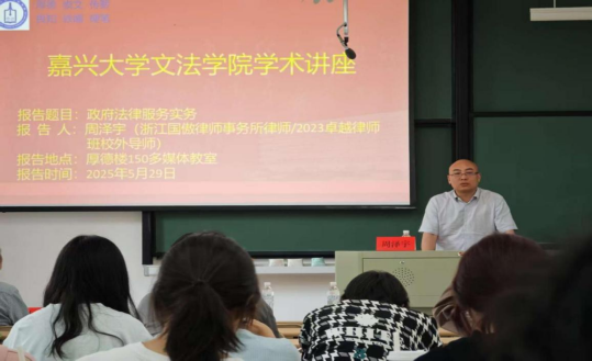作题为“政府法律服务实务”的讲座。该讲座是2023卓越律师班系列讲座之一。2023卓越律师班、法学专业、知产专业的近60名师生参加,讲座由学院党委书记童建华主持。