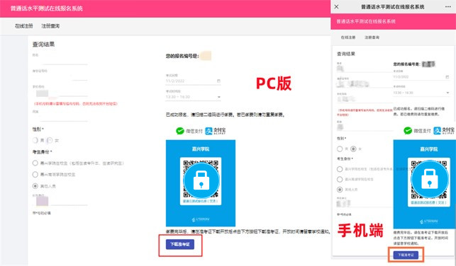 2.下载准考证网址为//pth.crdy1.net/#/query,下载后请自行用A4纸打印。《浙江省普通话水平测试考生健康状况报告表》和准考证在一张A4纸上,无需分开。(建议使用电脑端或非苹果品牌手机进行下载)
