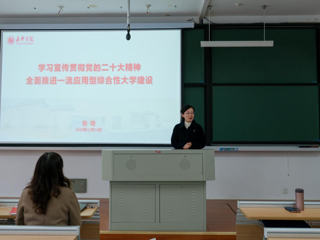 11月24日,嘉兴学院副校长张琦在厚德楼122教室,以“学习宣传贯彻党的二十大精神,全面推进一流应用型综合性大学建设”为主题,向成人电影