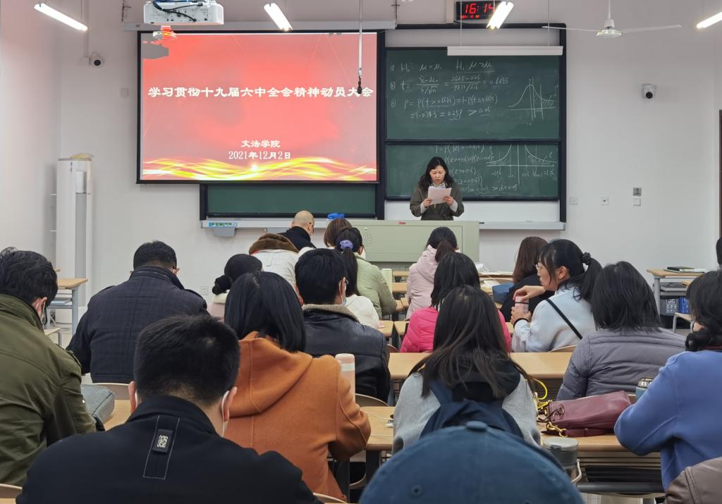 大家一致表示,将认真学习宣传贯彻党的十九届六中全会精神,深刻领悟党的百年奋斗历程所取得的伟大成就、伟大意义和伟大经验,坚定理想信念,大力弘扬伟大建党精神、红船精神,不忘初心、牢记使命,坚定实施“1358”发展战略,为推动学校事业高质量发展贡献文法力量。