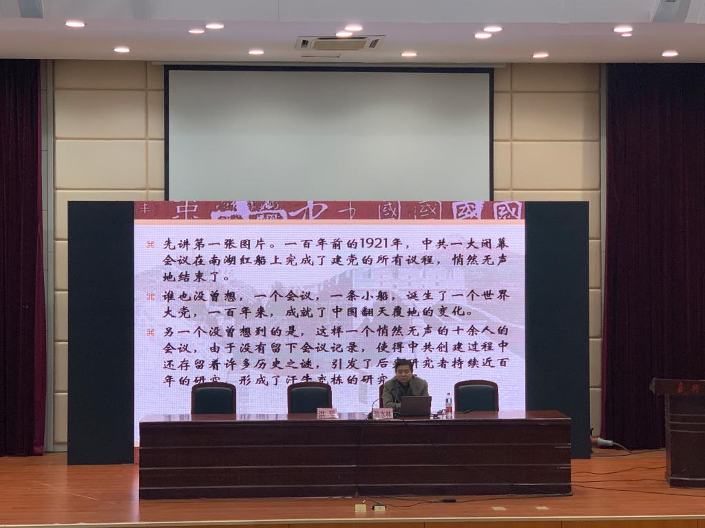 邀请了嘉兴学院红船精神研究中心、党史研究专家陈水林教授作了题为“红船精神与不忘初心”专题报告。陈水林教授结合自身研究成果,通过理论和史料相结合的方式,对“中共创建和建党初心、中共一大嘉兴南湖会议和红船精神的形成、怎么理解红船精神的深刻内涵、新时期为什么要弘扬红船精神”四个问题进行阐述。本次讲座内容丰富,陈教授在史料的梳理中提炼理论,在细节的再现中倾注情感,史家风趣、妙语连珠,使全院师生对建党历史有了更深的感悟,激发我们奋进壮志,以昂扬姿态为学院高质量发展而努力奋斗。