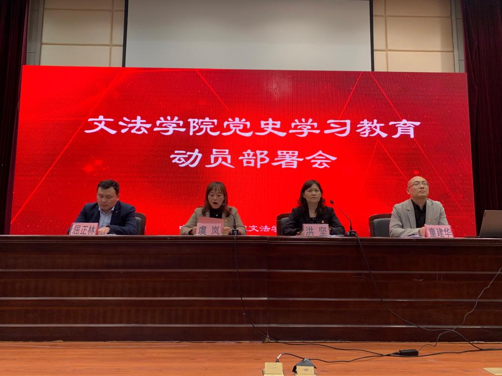 洪坚强调,要聚焦“为什么学”,着力提高政治站位、增强思想自觉,深刻认识开展党史学习教育的重大意义,全院师生要以强烈的政治责任感、历史使命感,从政治高度、历史深度、事业维度,深刻认识开展党史学习教育的重大意义;要聚焦“学什么”,全力感悟思想伟力、增强政治自觉,准确把握开展党史学习教育的目标要求,我们要贯彻落实中央“六个进一步”和省委“九学九新”要求,牢牢把握开展学习教育的重点,把党史这门必修课修好悟透,真正做到学史明理、学史增信、学史崇德、学史力行,落实立德树人根本任务;要聚焦“怎么学”,奋力践行初心使命,增强行动自觉,高标准高质量组织实施好党史学习教育,我们要加强组织保障,强化责任落实,突出文法特色,发挥学科专业学科优势,为师生办实事、解难题,坚持学习工作“两手抓两促进”,把全院师生在学习教育中激发出来的学习工作热情和进取精神,切实转化为攻坚克难、干事创业的强大动力和实际成效,以昂扬奋进的新姿态新担当,以实际行动和优异成绩庆祝中国共产党成立100周年!