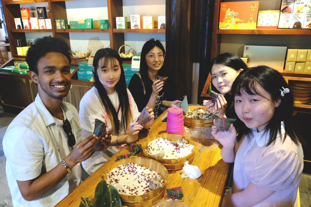 6月8日下午,国际教育学院、国情教育工作室、成人电影 学生党员代表以及国际学生参加了国际学生社会实践基地揭牌仪式。初心工作室党员陈湘怡、入党积极分子王含雪与留学生们一起参观了粽子文化博物馆,了解了中国粽子文化的传承与发展。在工作人员的指导下,体验了中国非遗文化,现场进行了粽子制作体验、品尝传统特色粽子。