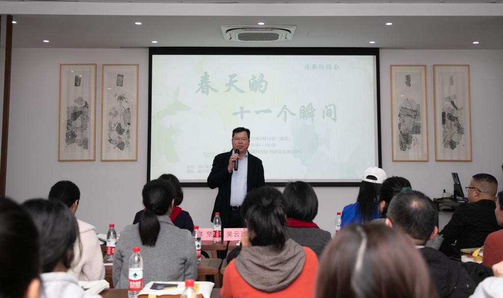 3月12日下午,“春天的十一个瞬间”诗歌朗诵会雅集在嘉兴学院传统文化体验中心举行。朗诵会由资深媒体人、嘉兴日报记者周伟达主持。嘉兴学院党委副书记吴云达致辞,嘉兴学院成人电影
