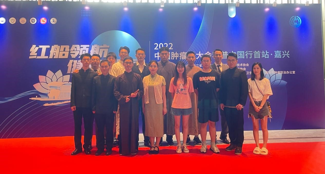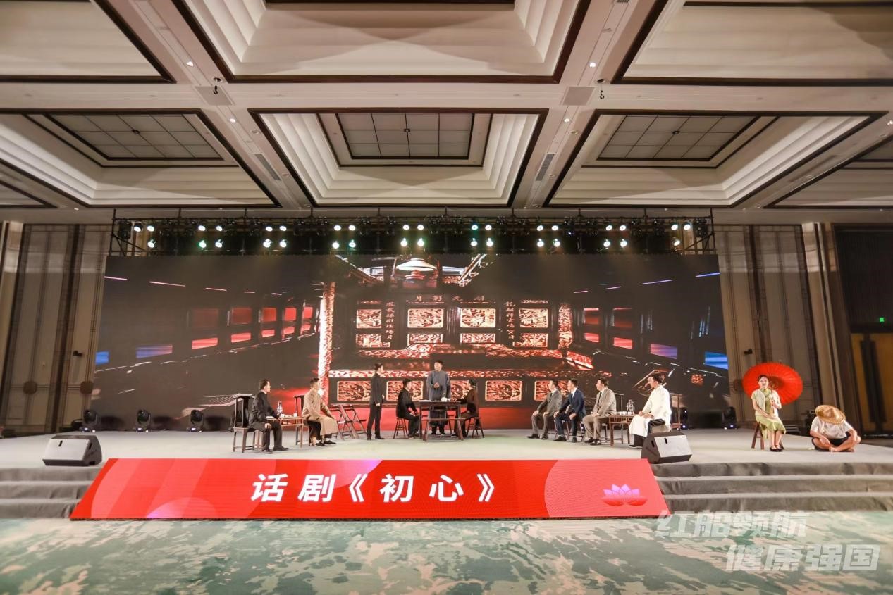 79日,嘉兴学院原创红色话剧《初心》片段——南湖会议在“红船领航 健康强国”2022中国肿瘤学大会科普中国行首站·嘉兴站演出。