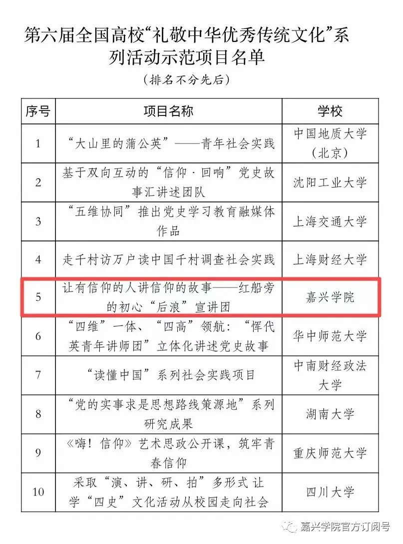 浙江省唯一!嘉兴学院项目入选第六届全国高校“礼敬中华优秀传统文化”系列活动示范项目